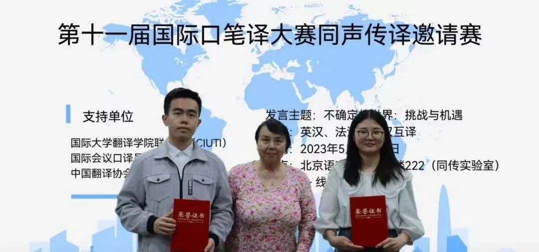 2023年4月7日,由中国外文局指导、中国翻译协会主办的第十一届全国口译大赛全国总决赛获奖名单公布。taptap竞彩足球学生喜获同传组冠军、同传及交传组双料亚军、6位一等奖(全国十强)、6位二等奖、2位三等奖,曾佳宁、卢信朝、刘宇波、林薇等教师获优秀指导老师奖。 本届赛事全程线上完赛,分为交传组和同传组,涉及中国式现代化、清洁能源等话题。共有来自全国24个省级区域和2个国外区域、69个院校单位共101位交传选手和15位...