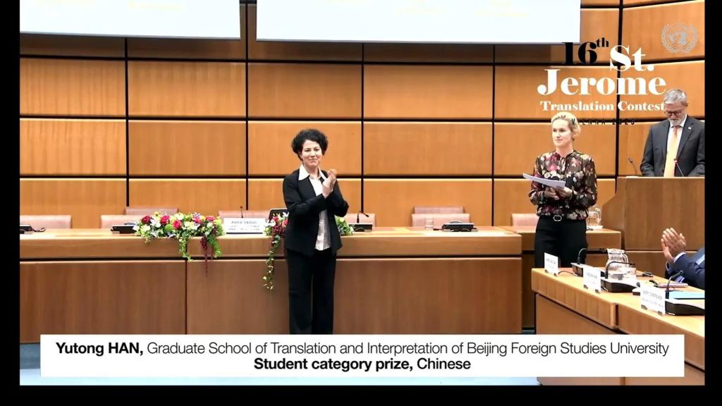 2023年10月4日,联合国第16届圣杰罗姆翻译竞赛颁奖仪式在联合国维也纳办事处举行,taptap2022级韩雨桐荣获英译汉学生组一等奖。参赛人员本届竞赛的参赛人员分为两组,第一组为联合国工作人员和实习生组,参赛者包括联合国各机构的现任和前任工作人员及实习生,以及各国常驻联合国代表团的工作人员;第二组为学生组,参赛者包括联合国各合作院校的在读学生。比赛内容比赛包括西译英、英译阿、英译汉、英译法、英译俄、英译西及英译...