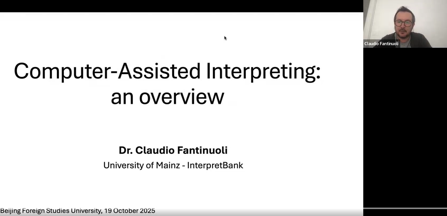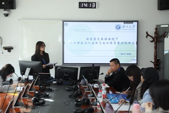 分论坛上,来自北外、中山大学、华南理工大学、天津大学、湖南大学、东北大学、中国政法大学、北京科技大学、四川外国语大学、大连外国语大学,以及英国利兹大学、美国明德大学蒙特雷国际研究院、俄罗斯阿尔泰国立大学等三十多所国内外高校的学者围绕“AI与口译学科建设”“AI与口译教育教学”“AI与口译职业实”“AI与口译质量评估”等议题分享最新研究成果。