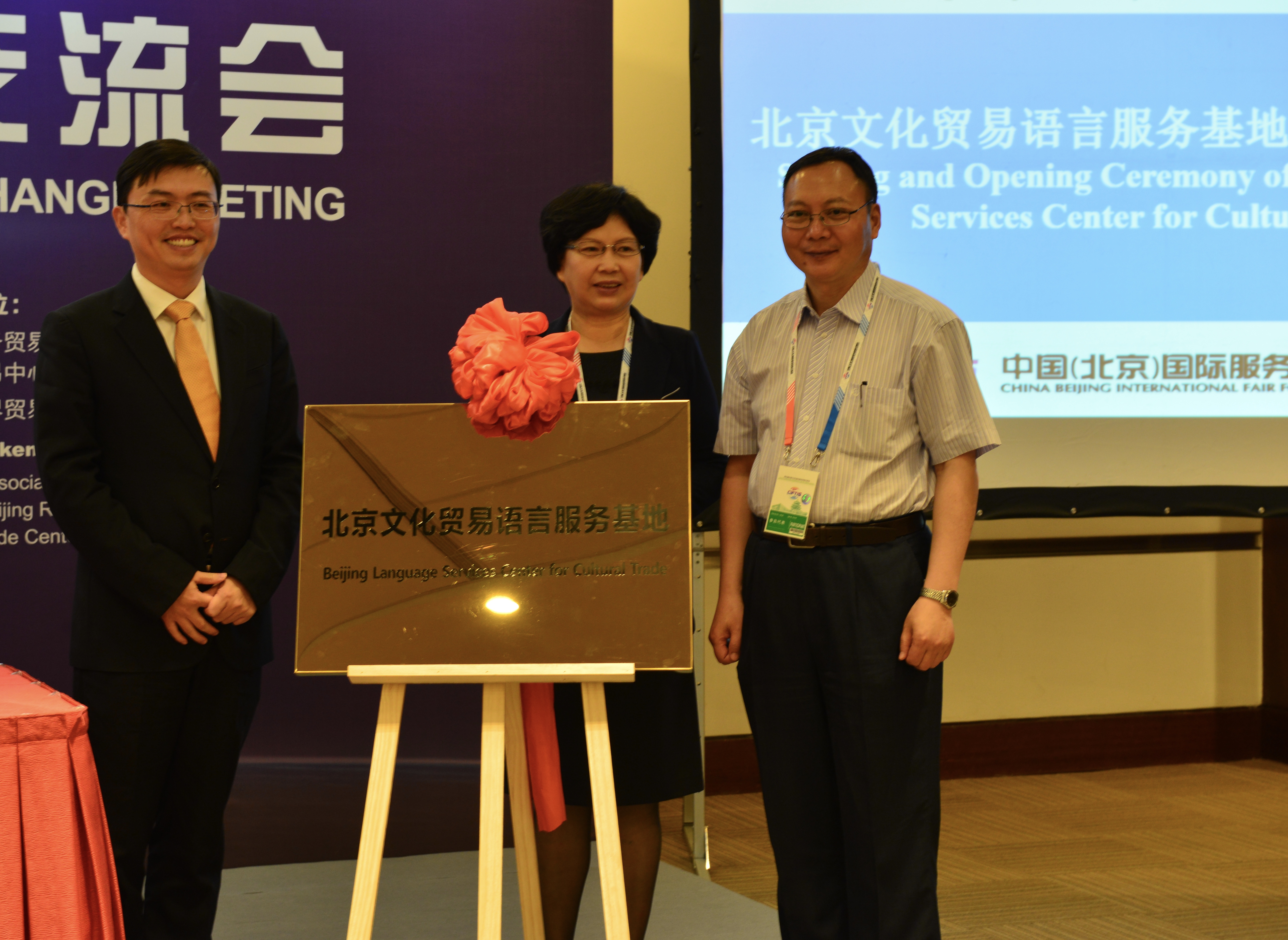 北京服务贸易协会会长李露霞女士、taptap点点足彩副院长李长栓教授、北京文化贸易语言服务基地负责人毛隽博士签约并共同为北京文化贸易语言服务基地揭牌。