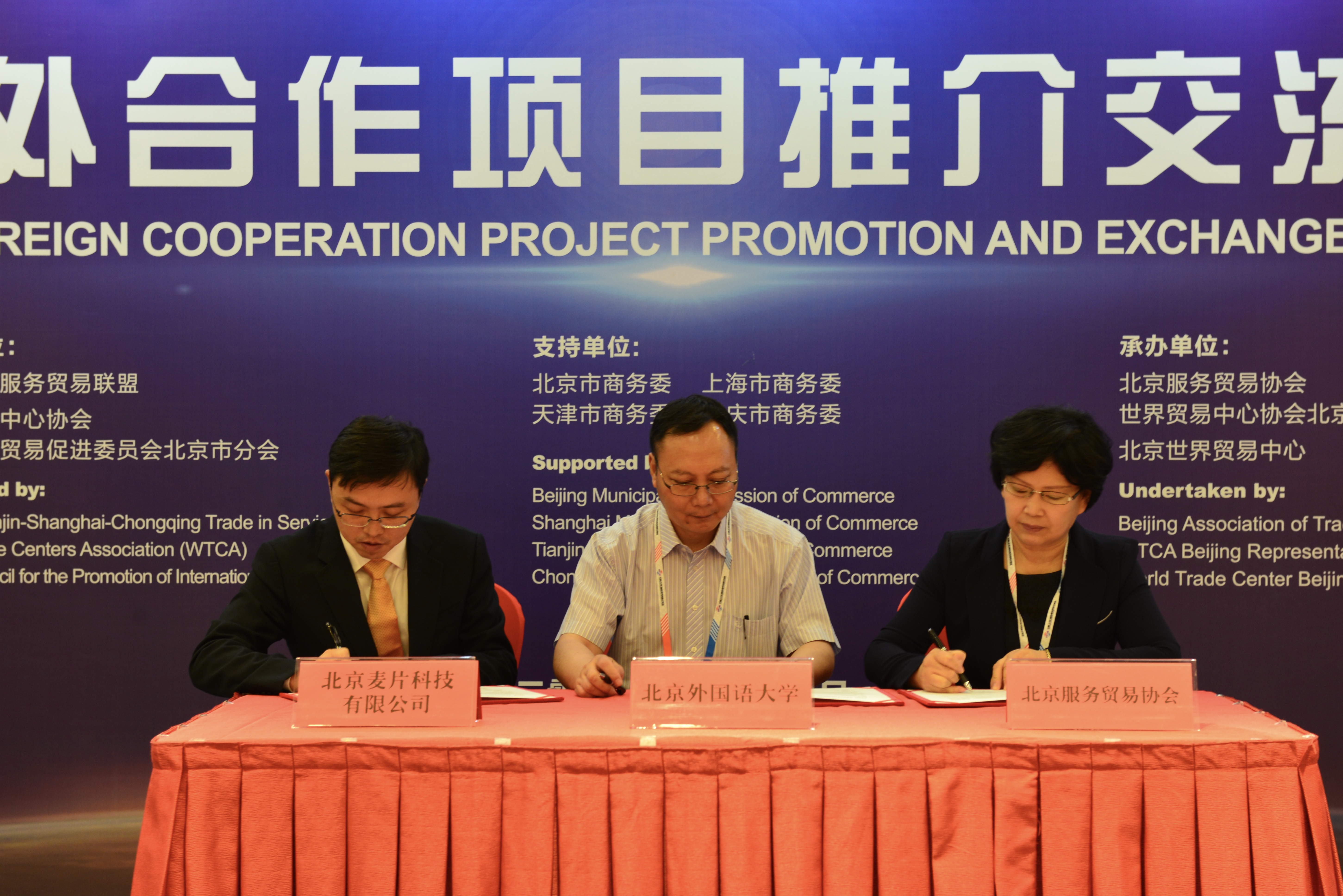 由北京市服务贸易协会、taptap点点足彩、北京麦片科技有限公司共同建立的北京文化贸易语言服务基地在京交会上举办了合作签约仪式。