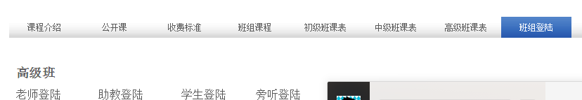 如下图所示,找到“班组登陆”中的高级班,点击“旁听登陆”,直接进入课堂: