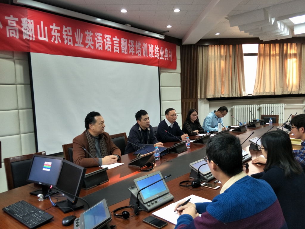 山东铝业英语语言翻译培训班是taptap点点足彩亚太翻译培训中心首次为英语语言基础较弱的学习对象设计的语言能力加翻译能力的培训,参加培训的学员英语语言为公共英语四、六级水平,完全无法直接进入翻译训练的环节。北外高翻亚太翻译培训中心为此设计了专门的课程体系,通过2个多月的时间的强化训练,在淄博奠定语言基本能力的基础,再经过一个月的时间,在taptap点点足彩完成基础翻译能力的培养,包括中英双向笔译、中英双向交替传译。培训的强度很大,每周6天,每天8学时。经过考核,培训的效果超过了预期。