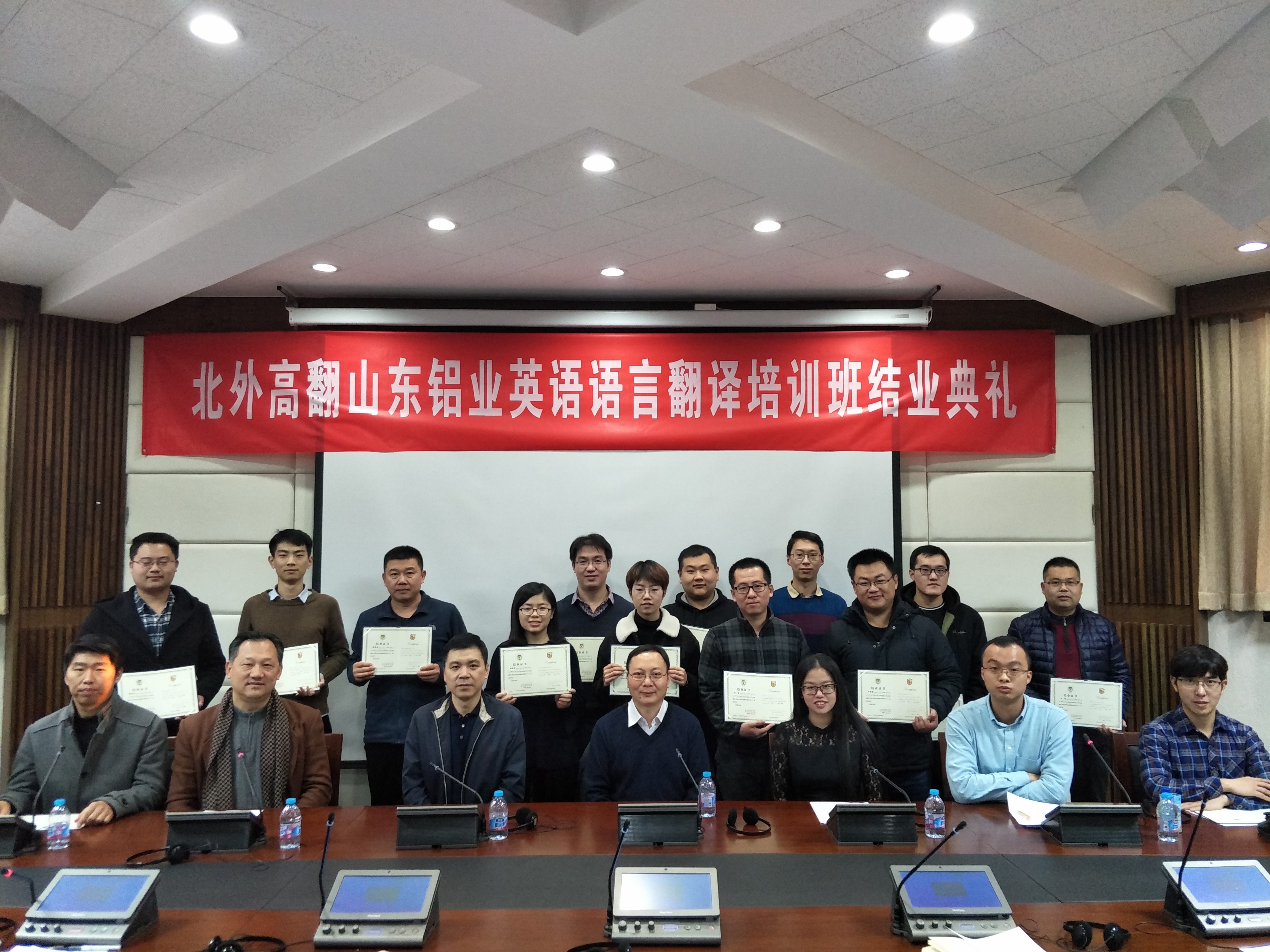 2017年12月27日,为期13个月的山东铝业英语语言翻译培训班在taptap点点足彩150人教室举办结业典礼,14名经过层层考试选拔出并组班的山东铝业员工,经过3个多月“艰苦卓绝”的学习,圆满完成了学习任务,收获了成果。