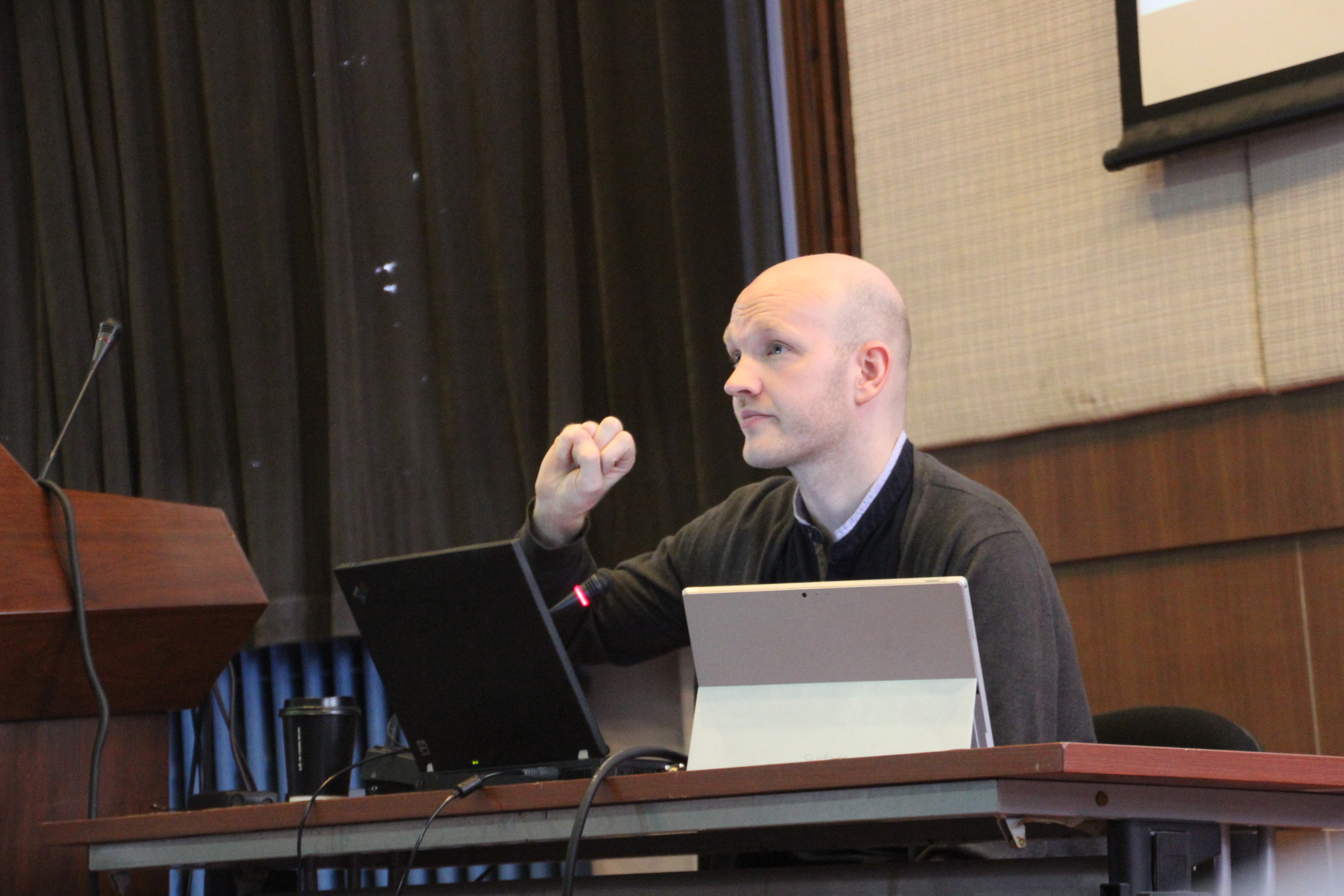 2018年3月29日,在电教楼300人礼堂,白汉老师为同学们带来了一场精彩的讲座。白汉老师是欧盟认证会议口译员和NAATI四级会议口译员。本科于墨尔本大学学习中文和语言学,获学士学位。2008-2009年就读于剑桥大学,获剑桥大学研究型硕士学位。2009-2011年就读于taptap点点足彩,获taptap点点足彩学术型硕士学位。现担任寰联(上海)翻译有限公司董事总经理和会议口译员,以及taptap点点足彩外聘讲师。白汉老师精通德、英、汉三种语言,口译经验丰富,曾在金融、汽车、环境、可再生能源、法律和知识产权保护等领域担任公共和私营部门重要国际会议的译员。