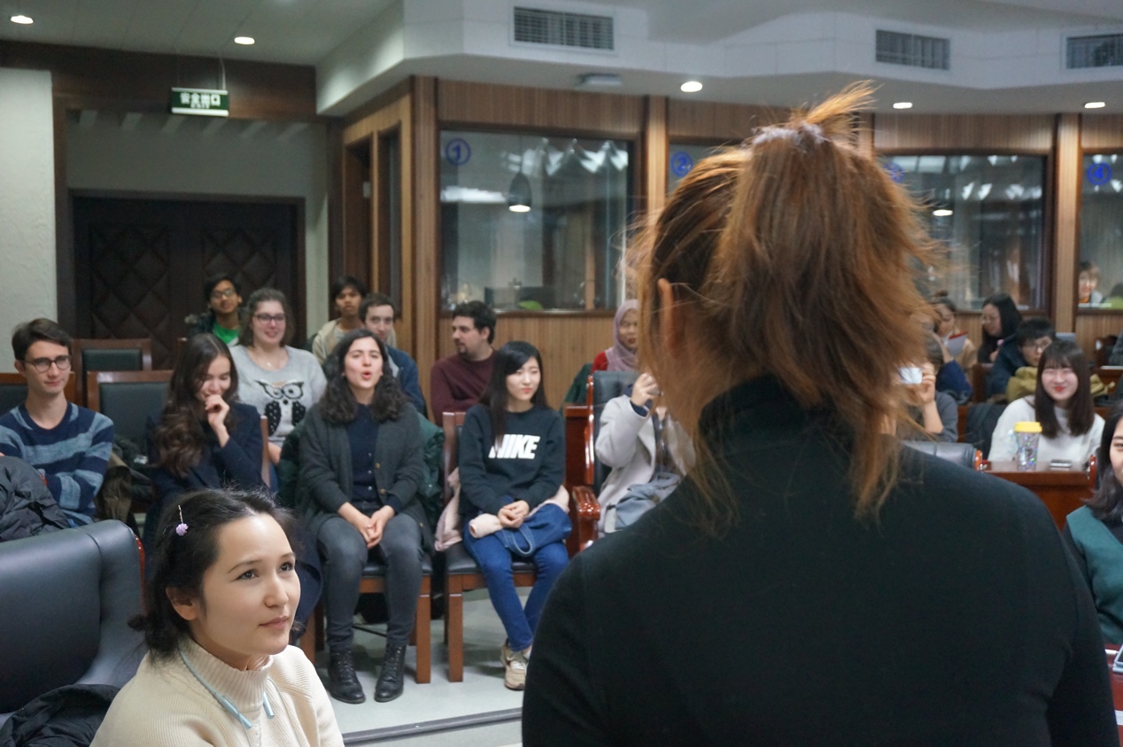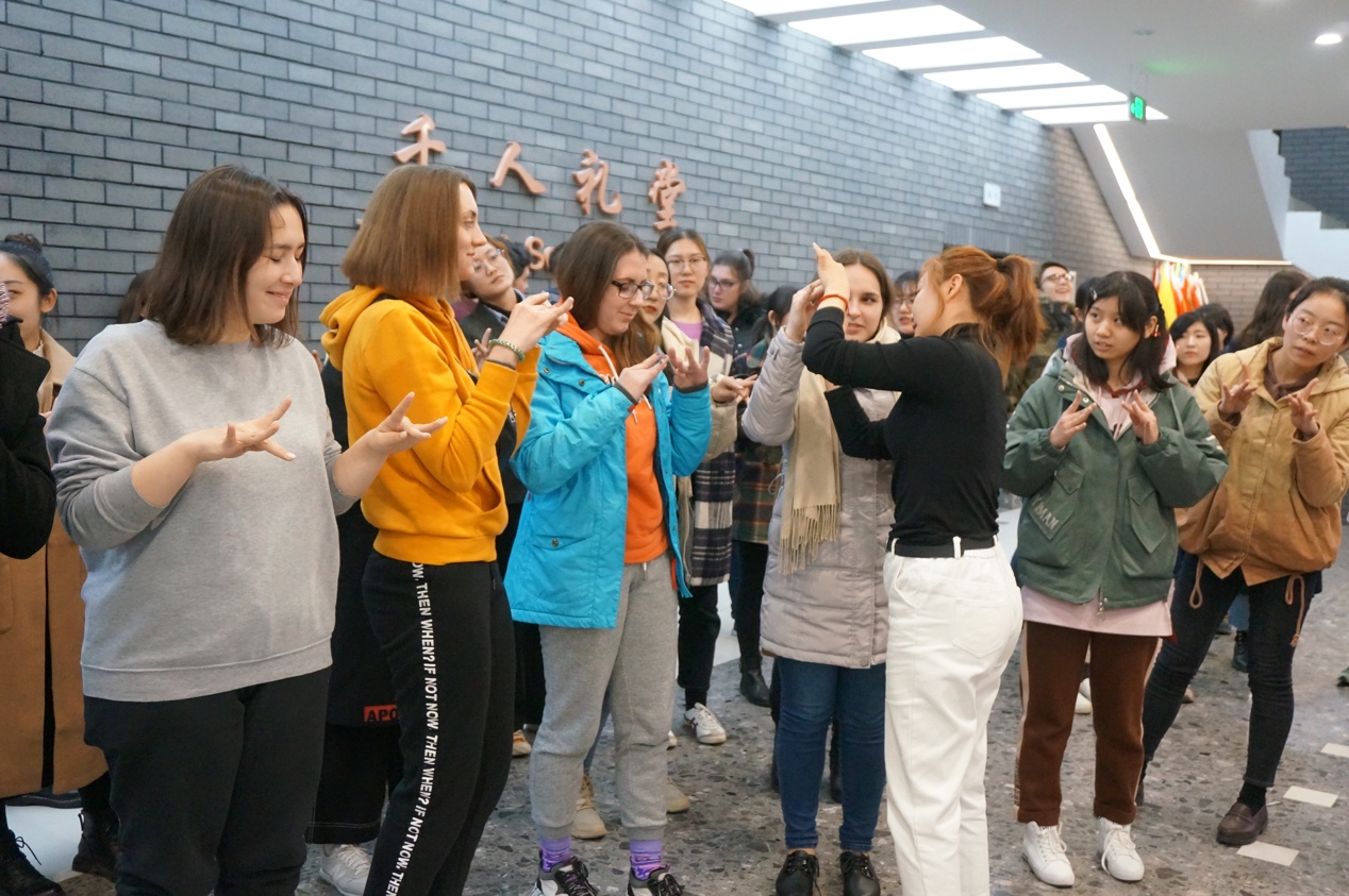 此次戏曲学习,首先王硕老师给大家讲解了博大精深的中国戏曲文化,包括各个戏曲品种,以及生旦净末丑各个戏曲行当的的特点以及典型角色。李佳柔老师带着大家学习了旦角的发音,同学们对京剧的唱腔、念白非常感兴趣,纷纷尝试。在场师生体验了京白青春整二八,生长在贫家,露窗春寂静,空负貌如花。”,领略到了花旦的脆灵。