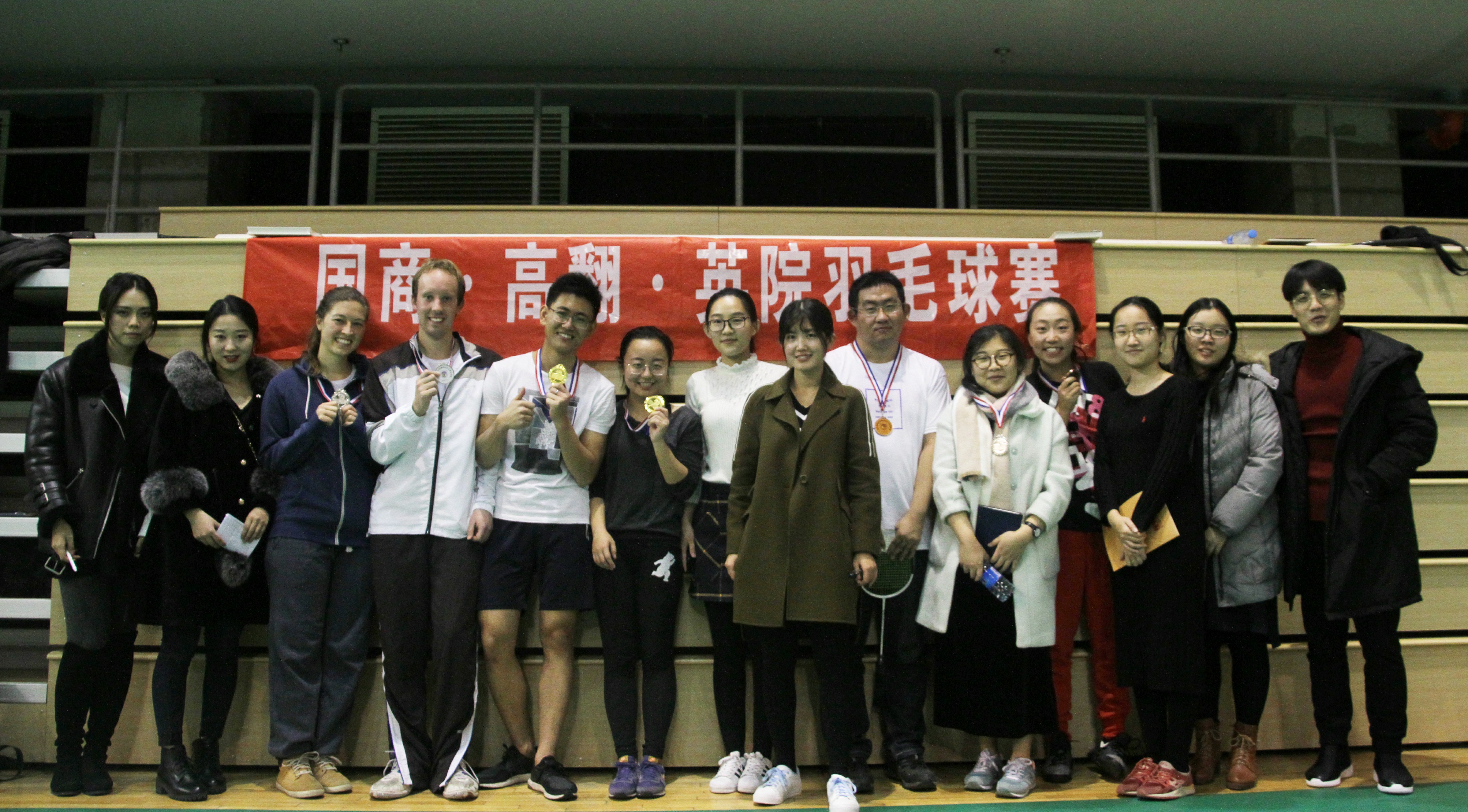 2017年11月25日、26日,taptap竞彩足球、国际商学院和英语学院联合举办了第三届三院羽毛球友谊赛。经过激烈角逐,高翻斩获了男双(陈艺夫/陈阳)冠军,男单(潘云昊)、女双(付丽媛/杨瑷淩)亚军以及女单(田丽娜)、混双(陈馨/陈艺夫)季军。