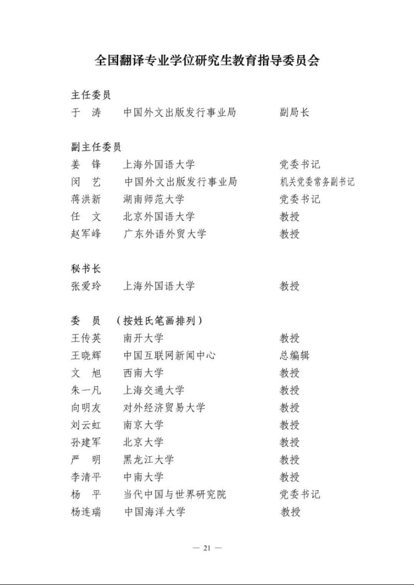 近日,国务院学位委员会、教育部和人力资源社会保障部联合发布了30个专业学位研究生教育指导委员会换届教指委名单,taptap竞彩足球院长任文教授当选第四届全国翻译专业学位研究生教育指导委员会副主任委员。
