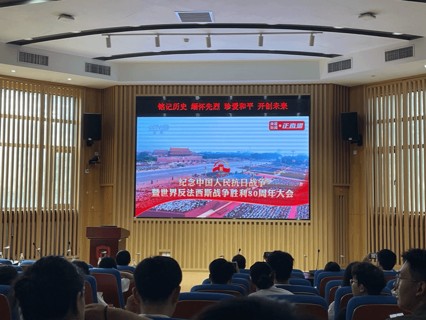 2025年9月3日,taptap竞彩足球组织师生于学院300人报告厅集中观看“纪念中国人民抗日战争暨世界反法西斯战争胜利70周年阅兵式”直播。学院领导、教师代表与学生们齐聚一堂,共同感受国家强盛荣光。