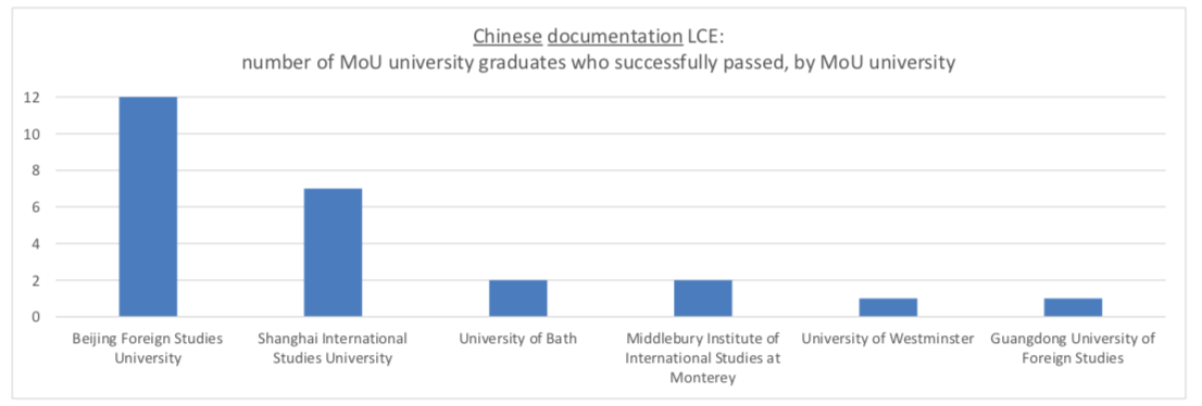 2017和2018年合作院校通过联合国中文笔译考试者的人数